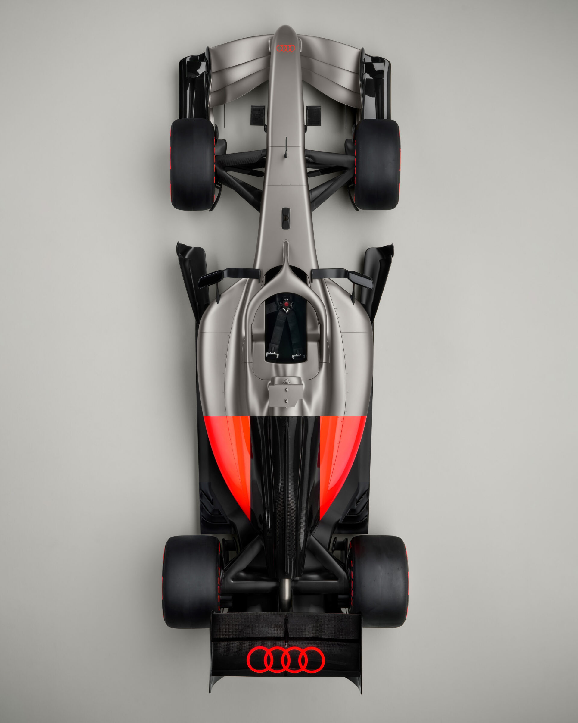 The design of the R26 Concept exudes minimalism and dynamism. The combination of titanium, carbon black, and the new Audi Lava Red color gives the car a powerful presence, while the red Audi rings will serve as a subtle yet striking signature in the future. Particularly striking is the diagonal color separation along the side line, which inevitably draws the eye to the rear and the power unit—a visual symbol of focus on the essentials: performance, technology, and speed. The car is still without sponsor logos. It is precisely this reduced form that makes it clear where the brand’s aesthetics are heading—clear, pure, and focused.