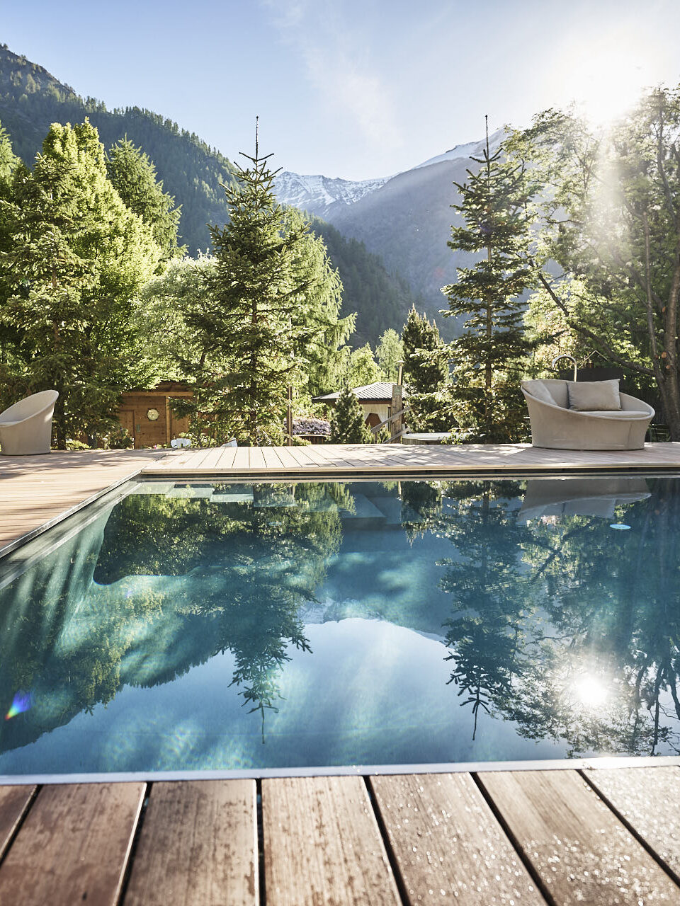 Design, Yoga und Apfelblüte. Das Schwarzschmied ist seit Jahren eine feste Größe für alle, die Designhotels mit Seele suchen. In Lana, zwischen Meran und Bozen, liegt es mitten in den Apfelplantagen, die im Frühling in ein weiß-rosa Blütenmeer explodieren. Das Konzept: bewusster Luxus, viel Licht, klare Formen, dazu Yoga, Spa und eine hervorragende Küche. Südtirol modern interpretiert – entspannt, stilvoll und niemals steif.